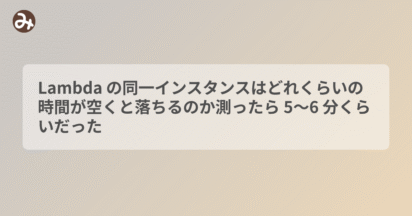 Lambda の同一インスタンスはどれくらいの時間が空くと落ちるのか測ったら 5〜6 分くらいだった